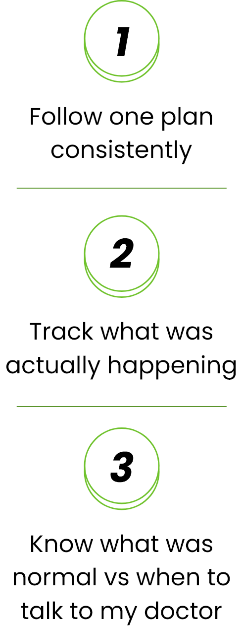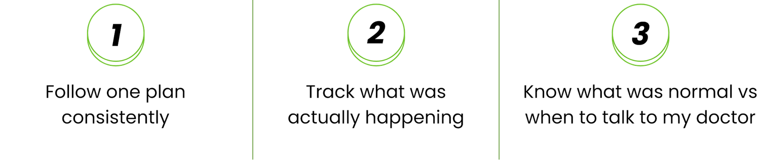 For 30 days, I used the tools daily and checked in on WhatsApp whenever I felt myself spiraling. The ‘If X happens, do Y’ guidance was huge. Instead of throwing my whole protocol out, I could look at my tracker, compare it to the guide, and either stay the course or email my doctor with clear notes.